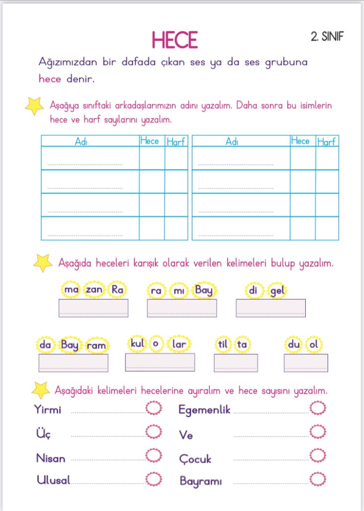 1. Sınıf İçerikleri – Okuma Yazma Etkinlikleri